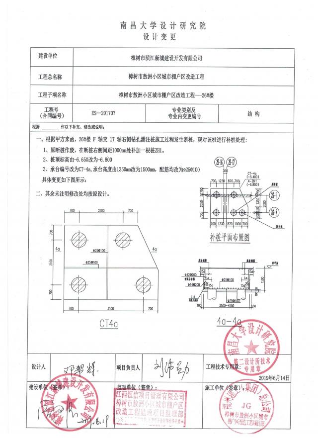 【重大設計變更信息】樟樹市敖洲小區城市棚戶區改造工程補樁設計變更