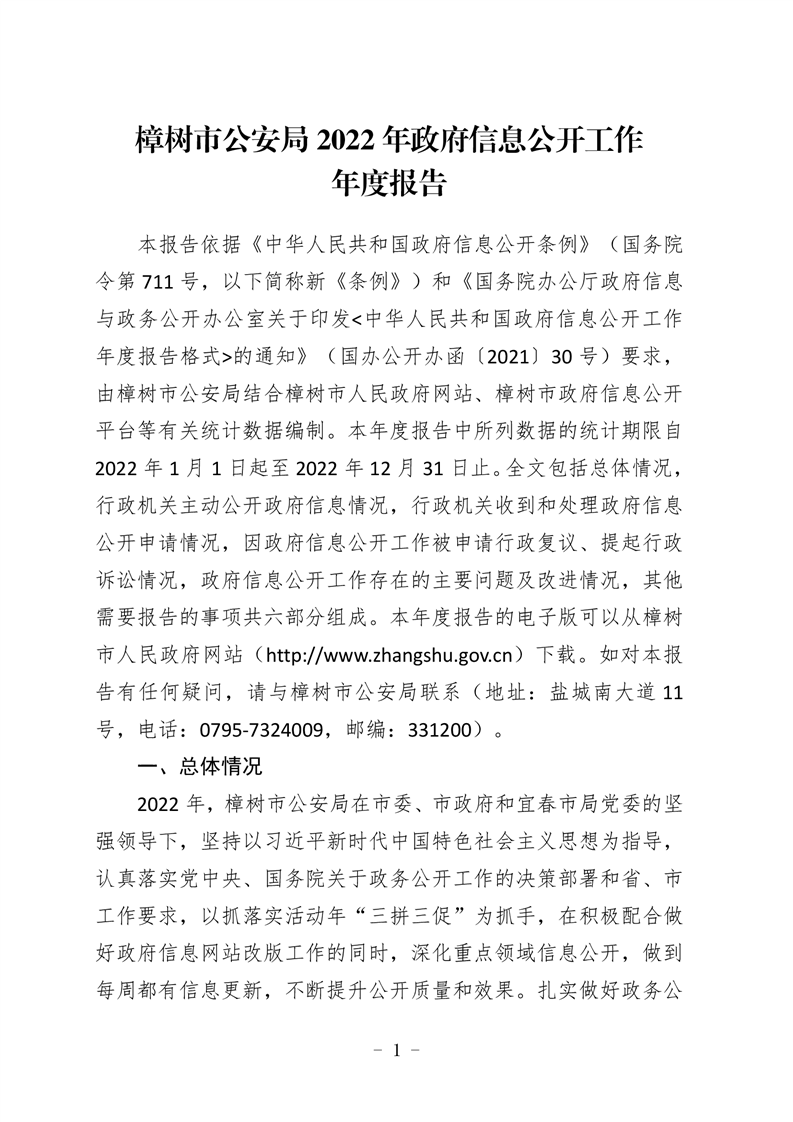 樟樹市公安局2022年政府信息公開工作年度報告