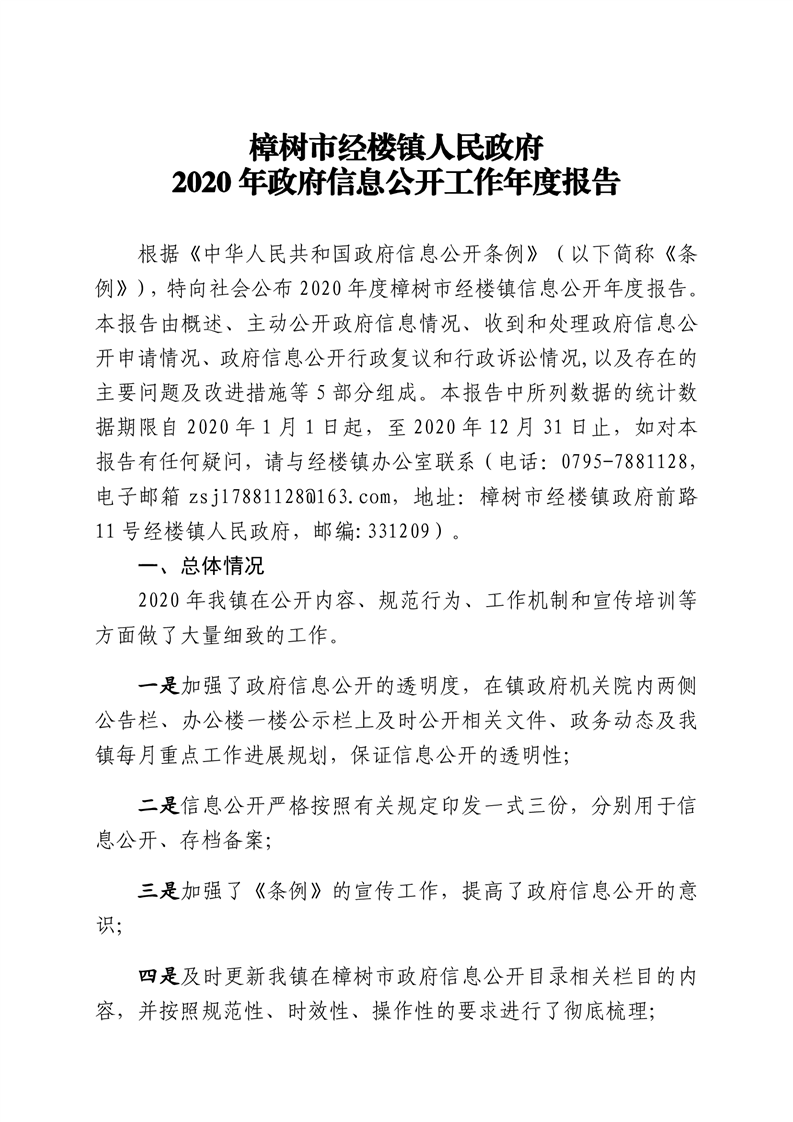 樟樹市經(jīng)樓鎮(zhèn)人民政府2020年政府信息公開工作年度報(bào)告
