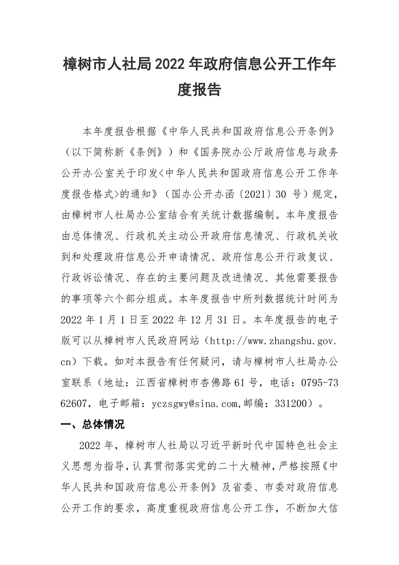樟樹(shù)市人社局2022年政府信息公開(kāi)工作年度報(bào)告