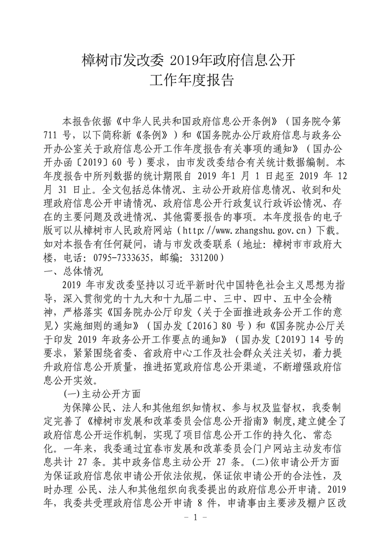 樟樹市發改委 2019年政府信息公開工作年度報告