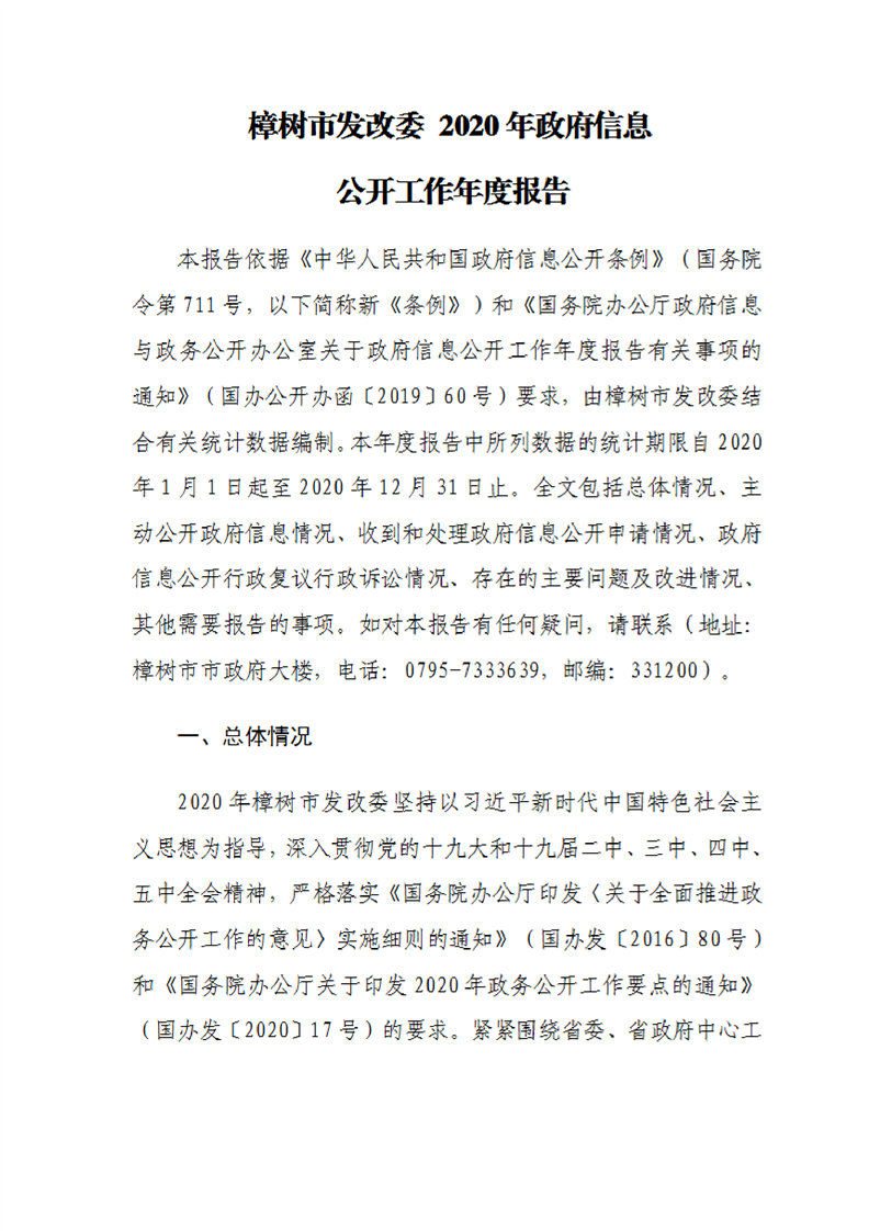 樟樹市發(fā)改委2020年政府信息公開工作年度報告