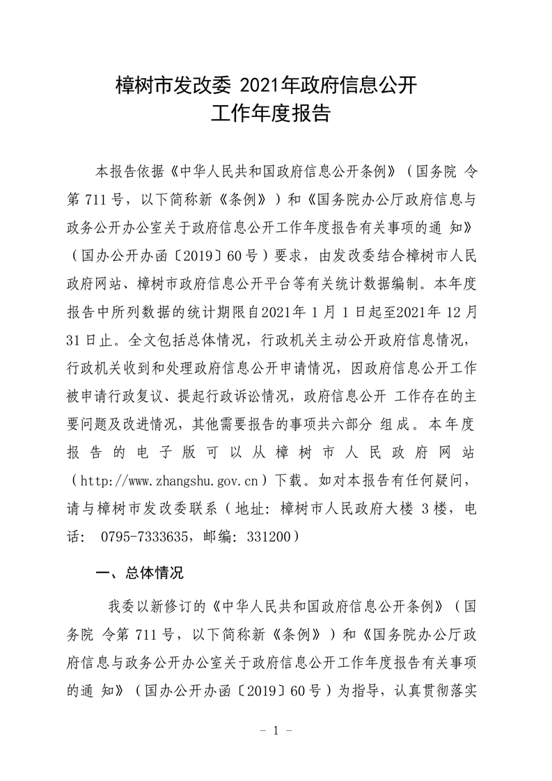 樟樹市發(fā)改委 2021年政府信息公開工作年度報(bào)告