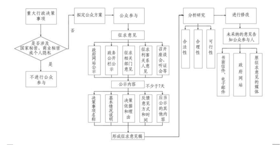 第三條 本制度所稱的重大行政決策公眾參與工作制度是指鎮(zhèn)政府行政機關(guān)在管理社會事務(wù)和促進地方經(jīng)濟社會發(fā)展過程中,作出的具體行政行為涉及社會公眾或組織的重大切身利益或者對社會有重大影響的事項在正式?jīng)Q定之前,充分聽取社會公眾意見和建議后再作出決定的制度。