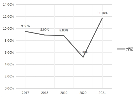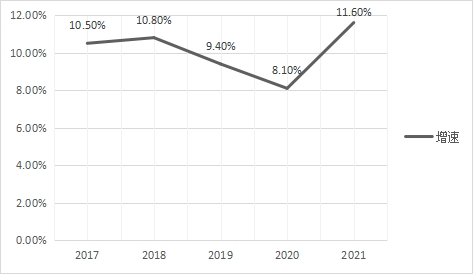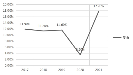 圖 6 2017年—2021年社會(huì)消費(fèi)品零售總額增長(zhǎng)速度