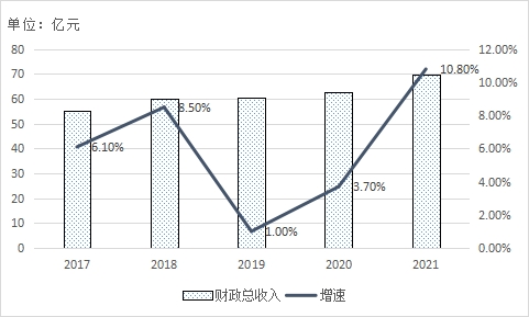 圖 8 2017—2021年財(cái)政收入及其增長(zhǎng)速度