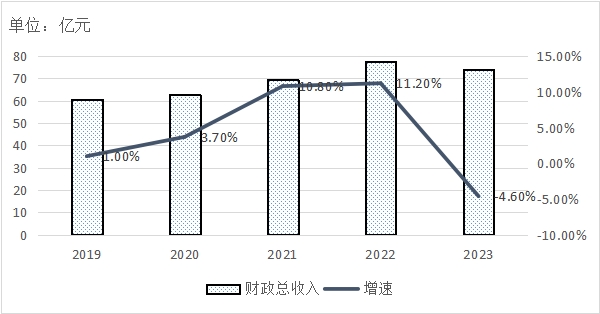 全年財政總收入73.9億元,下降4.6%,兩年平均增長5.2%。全年一般公共預算收入36.45億元,下降3.1%。分稅種看,增值稅11.06億元,增長16.0%;企業所得稅3.67億元,下降3.0%;個人所得稅0.45億元,增長11.0%。全年一般公共預算支出68.91億元,下降8.8%。其中,教育支出14.99億元,與上年持平;社會保障和就業支出11.08億元,下降1.2%;城鄉社區支出6.61億元,下降19.5%。