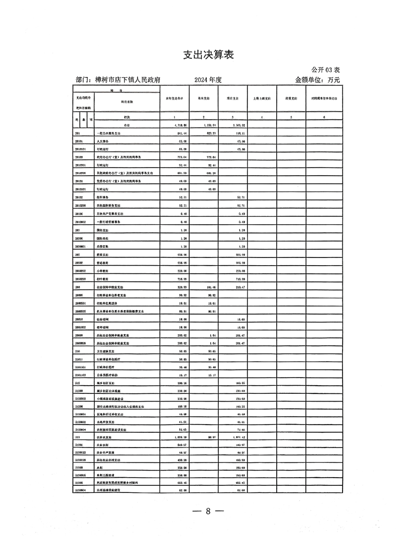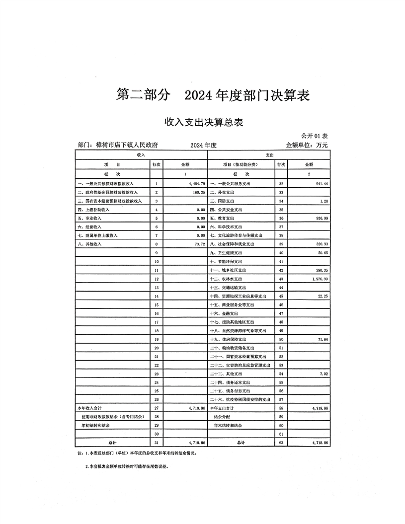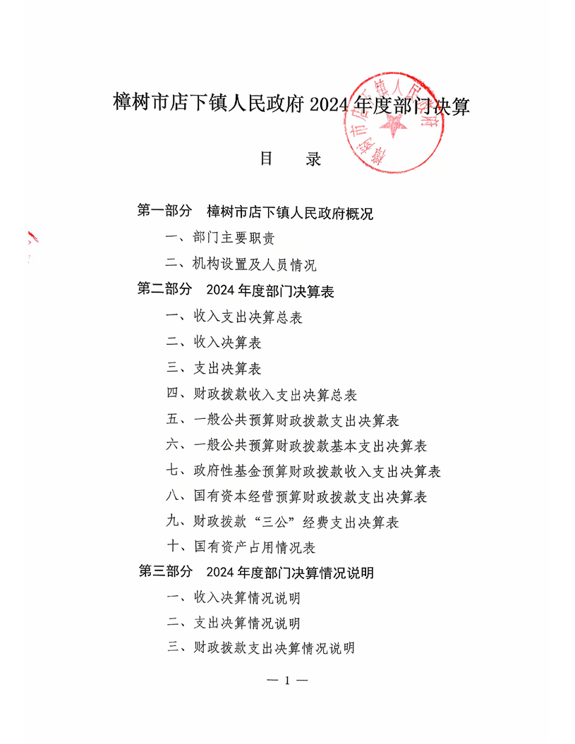 樟樹市店下鎮人民政府2024年度部門決算