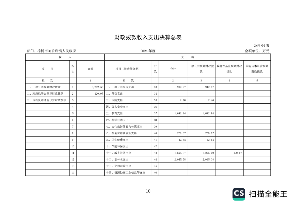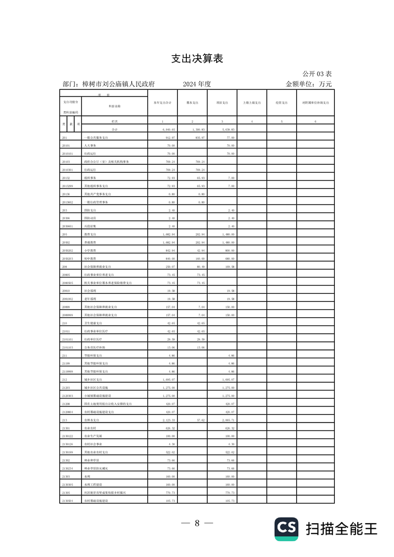 樟樹市劉公廟鎮人民政府2024年部門決算