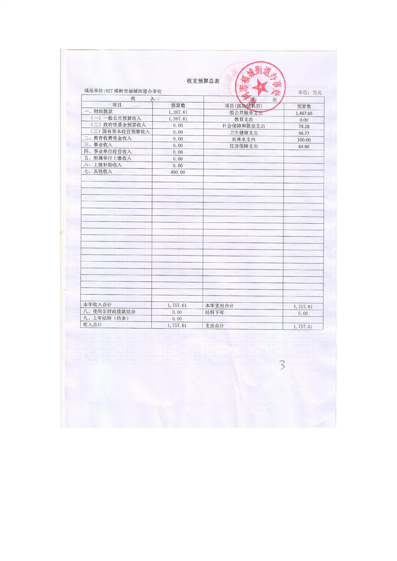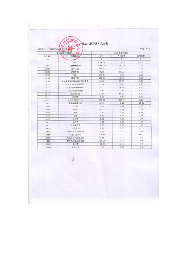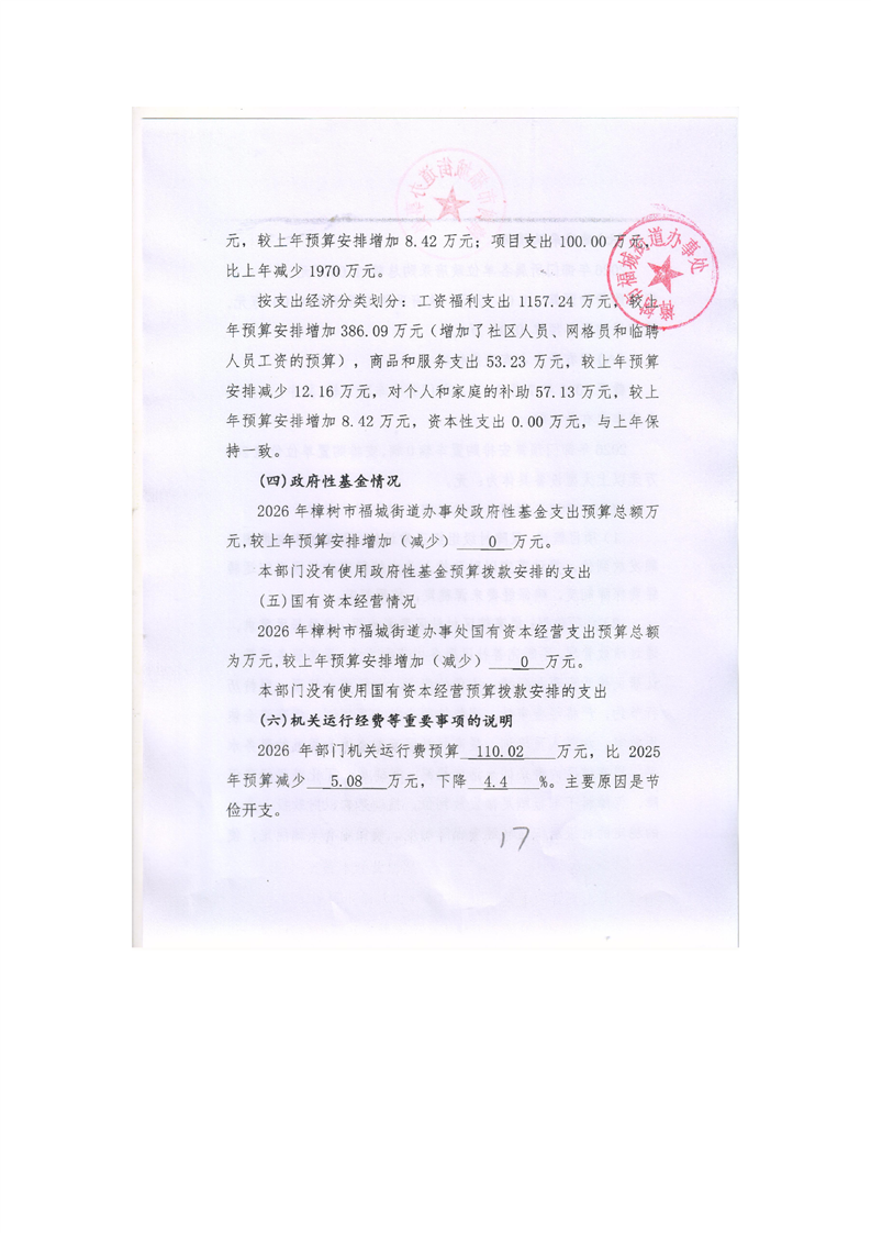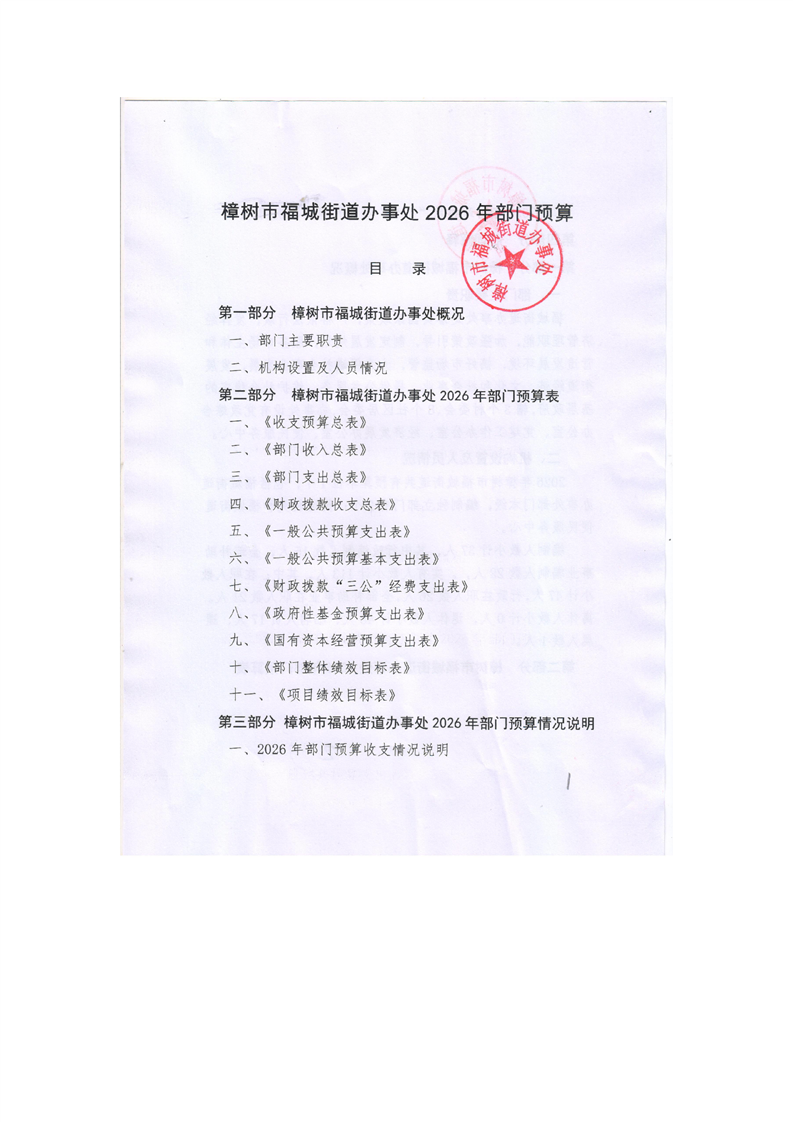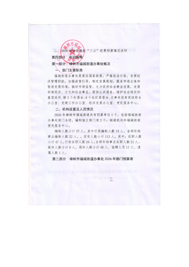 樟樹市福城街道辦事處2026年部門預算