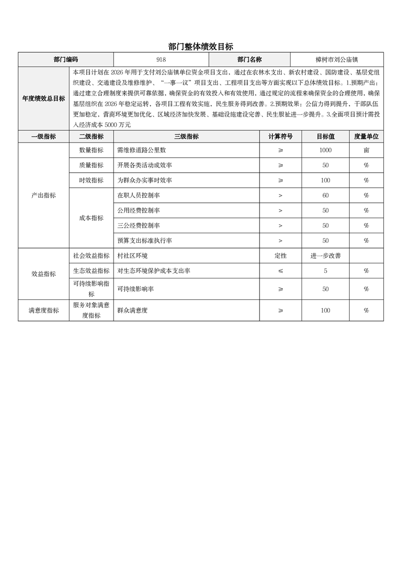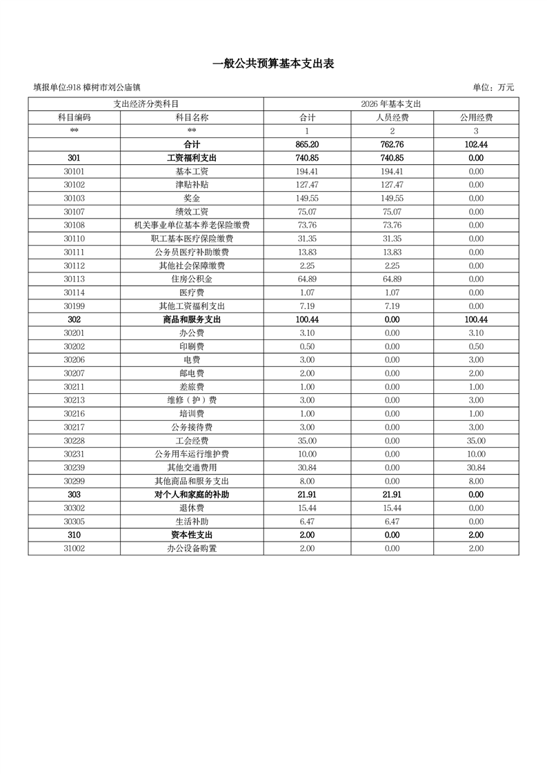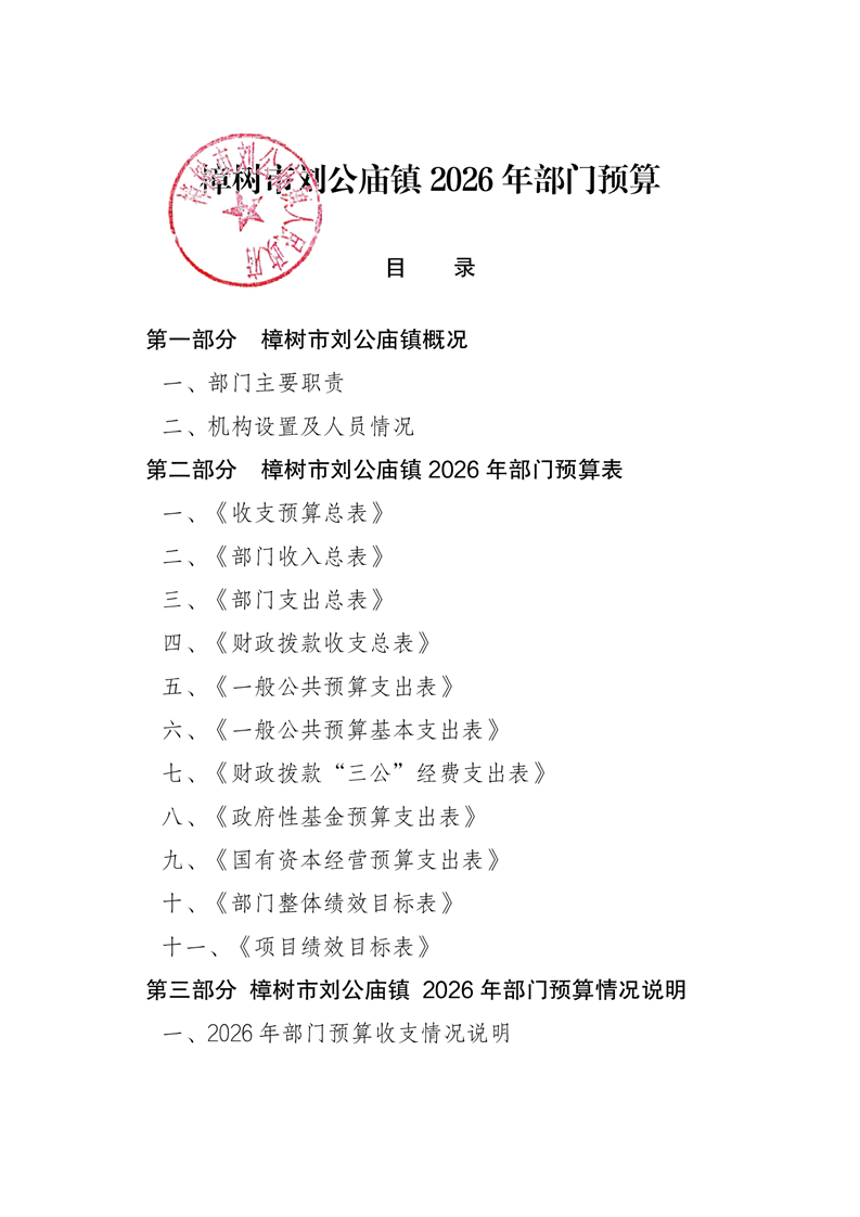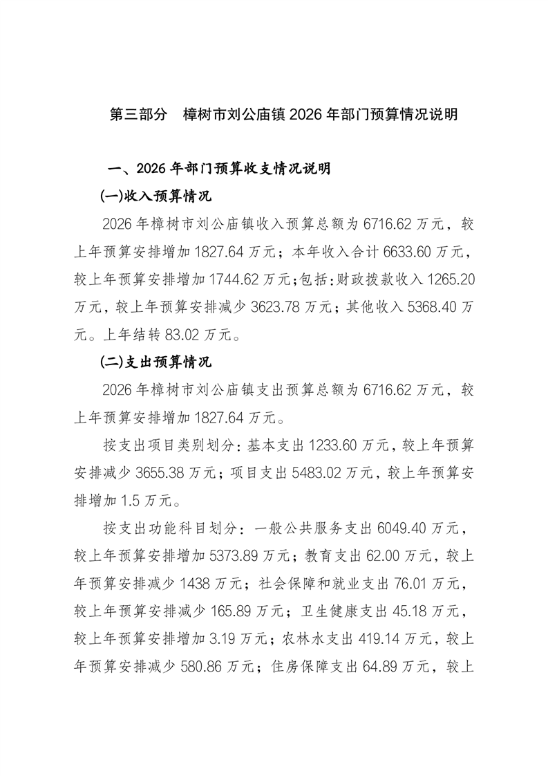 樟樹市劉公廟鎮人民政府2026年部門預算