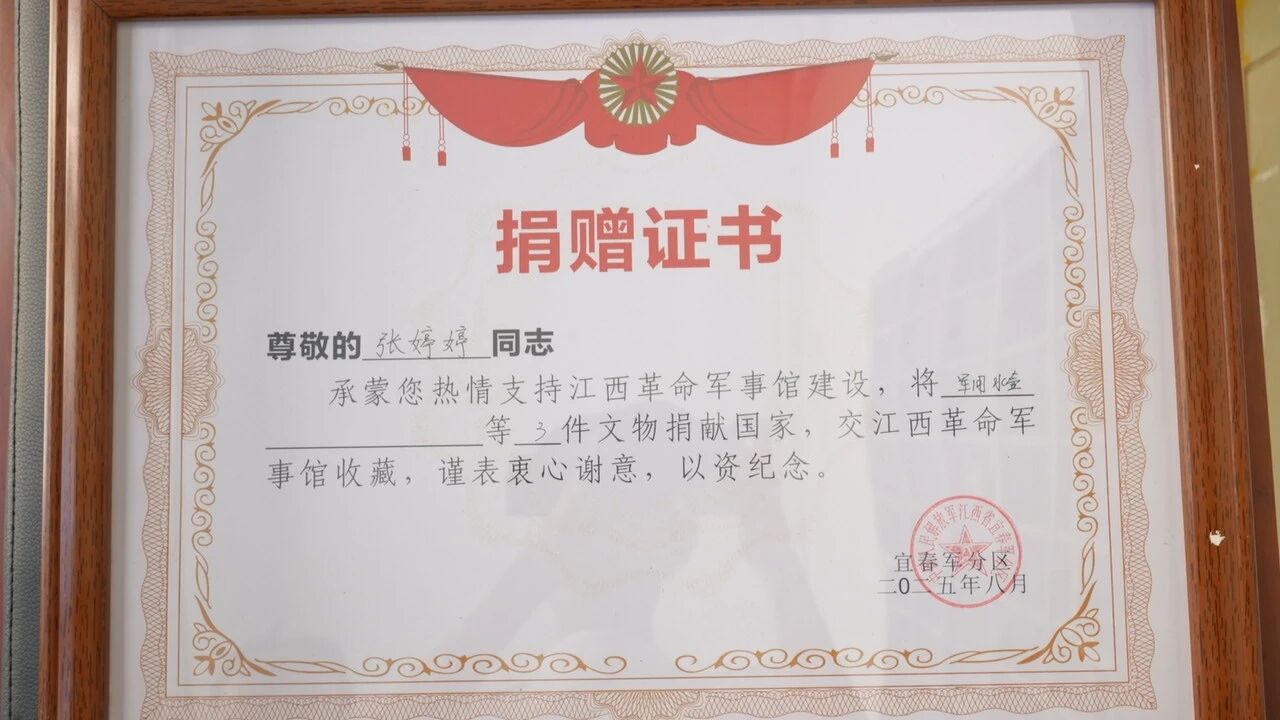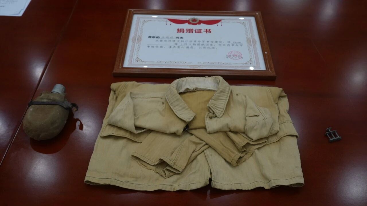 其孫女張婷婷將張海棠將軍生前使用過的軍用水壺、軍服、戰場輸液調節扣等物品委托我市集中捐贈給江西省革命軍事館。