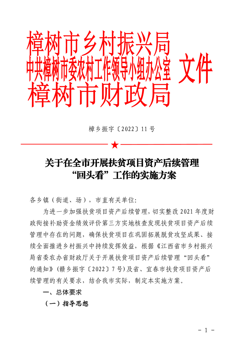 樟鄉振字〔2022〕11號 關于在全市開展扶貧項目資產后續管理“回頭看”工作的實施方案