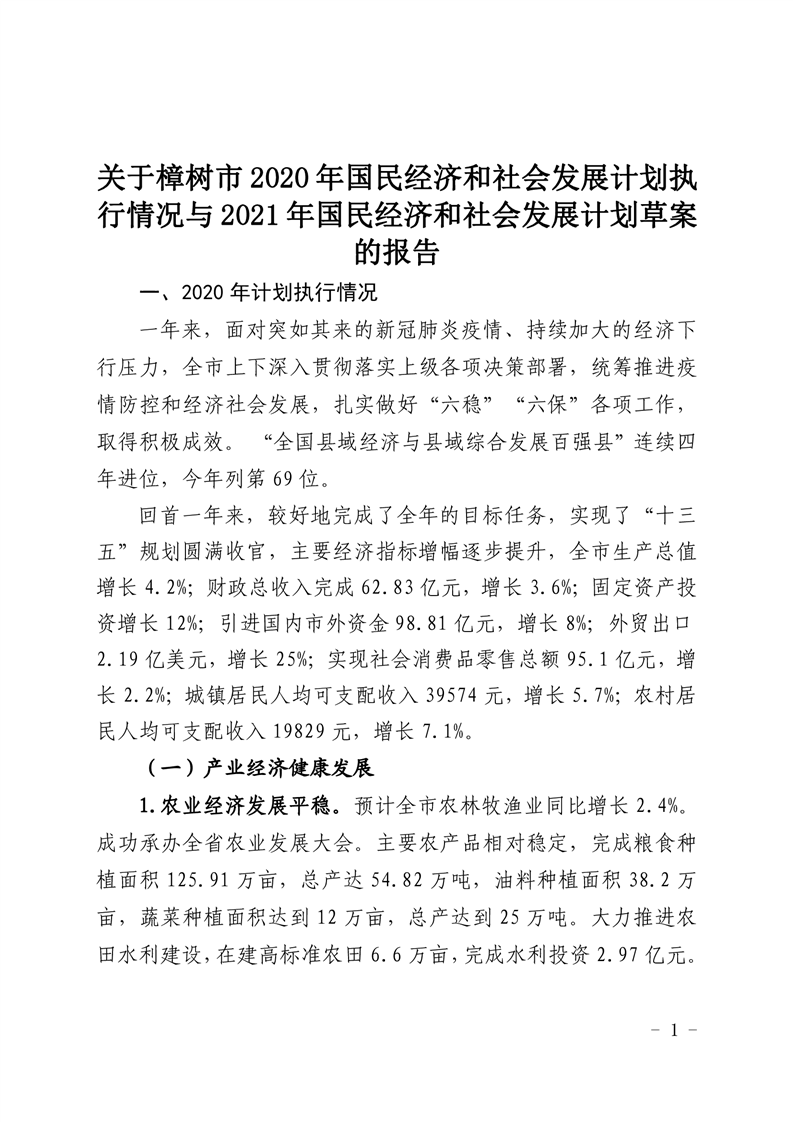 關于樟樹市2020年國民經濟和社會發展計劃執行情況與2021年國民經濟和社會發展計劃草案的報告.pdf
