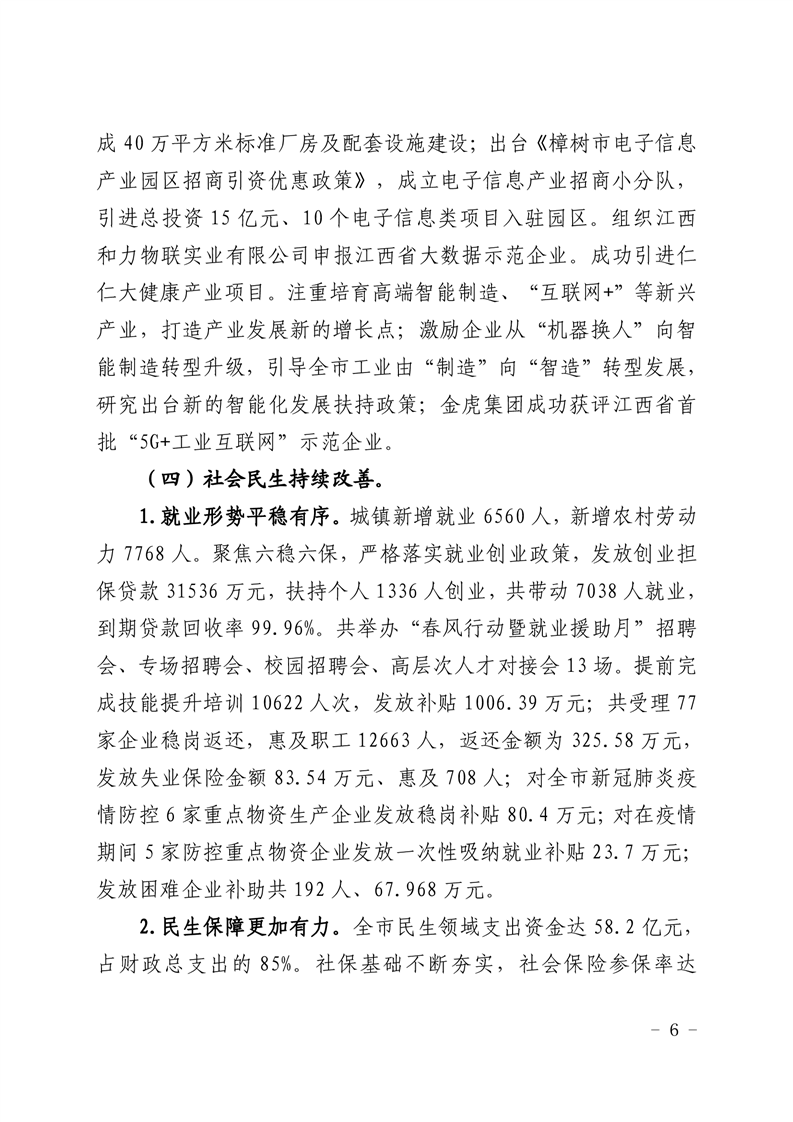 關于樟樹市2020年國民經濟和社會發展計劃執行情況與2021年國民經濟和社會發展計劃草案的報告